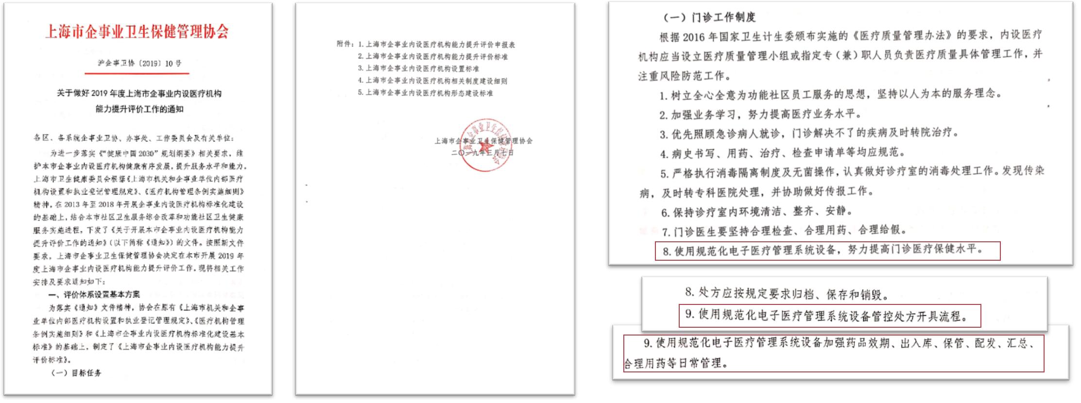 在上海市企事业卫生保健管理协会的委托和指导下,研发了适合企事业单位、养老机构等使用的“云端企业医务室”,是上海市内设医疗机构标准化建设的信息化解决方案首选供应商。